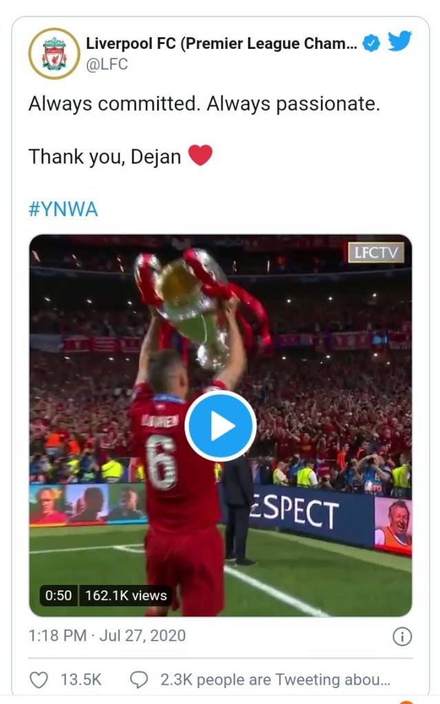 Everybody at Liverpool Football Club would like to thank Dejan for his contribution over the years and wish him all the very best in his new challenge.
