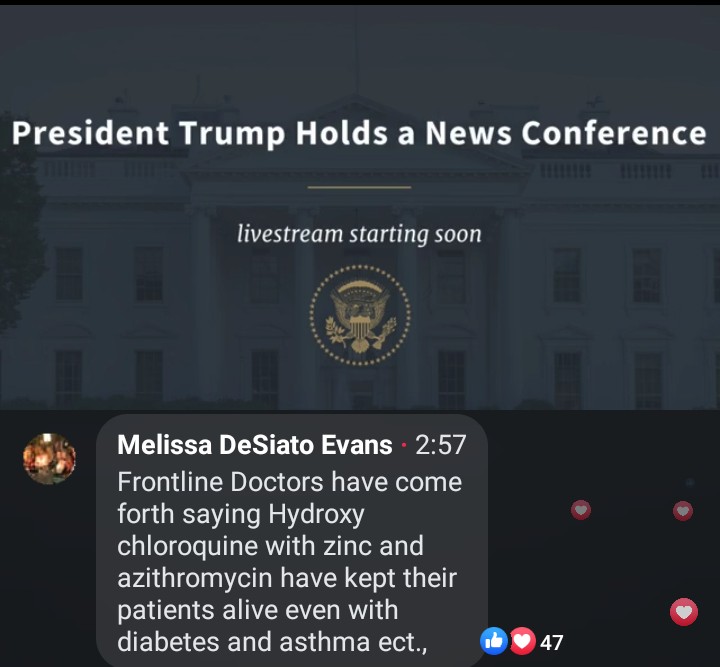 Asked to clarify his position on the efficacy of hydroxychloroquine, Trump said that “many doctors think it is extremely successful.”