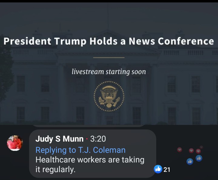 “I took it for a 14-day period, and I’m here. Right? I’m here,” he said. “I don’t think you lose anything by doing it, other than politically. It doesn’t seem to be too popular you know why? Because I recommend it.”
