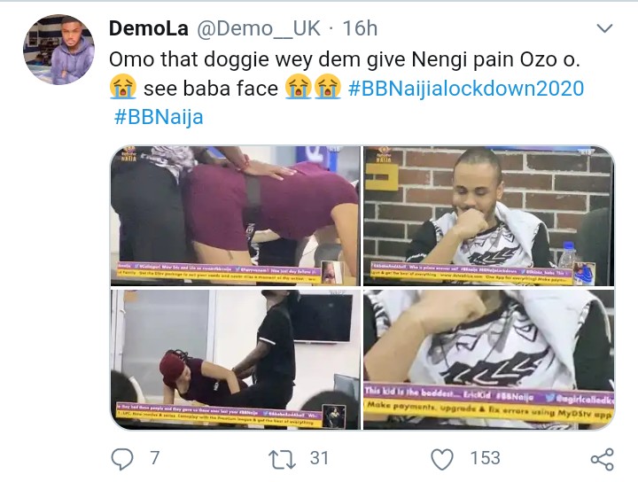 Nengi on her part also blended with the flow as she tactically leaned forward with her backside facing Prince to give him a showdown of his life.