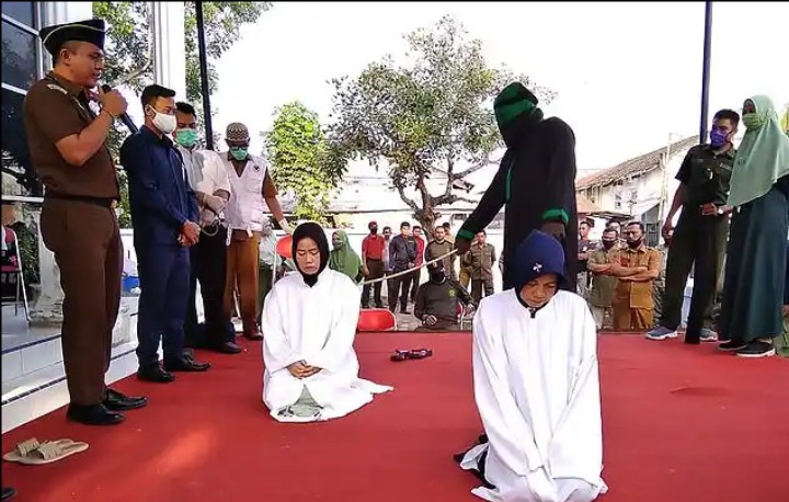 Several Indonesians gathered on Monday to witness 2 women as they were lashed 100 times for advertising their “runs business” online.