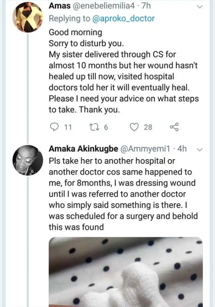 A new mom whose stitches refused to heal for 8 months after childbirth has revealed what was found in her body when she was referred to another doctor.
