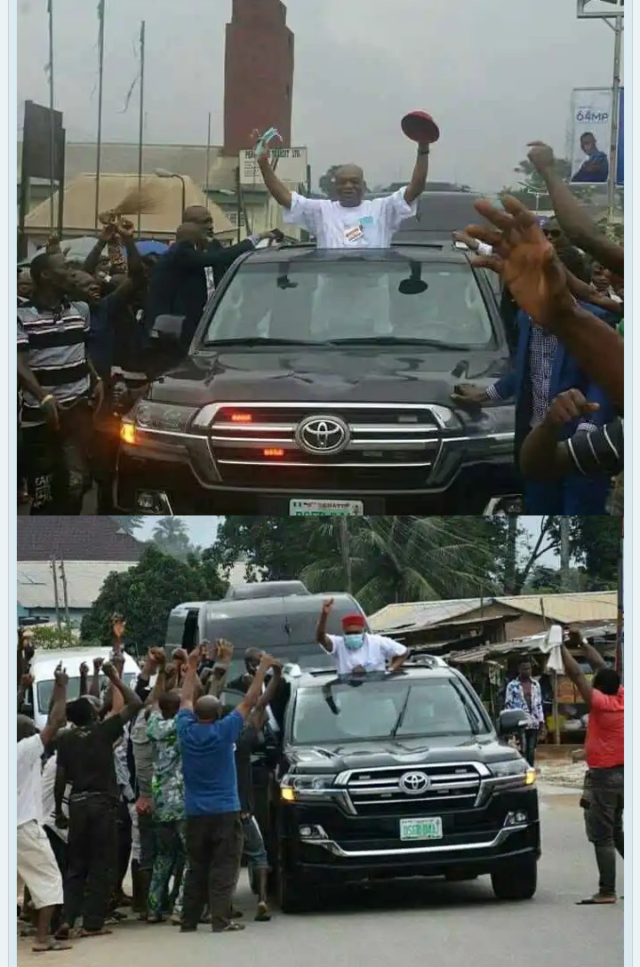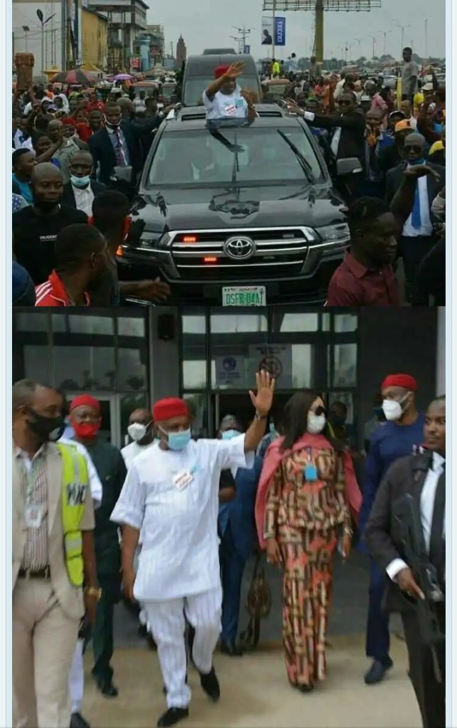Senator Orji Uzor Kalu received a rousing welcome when he returned to Abia state on Monday, July 27, months after he was released from prison.