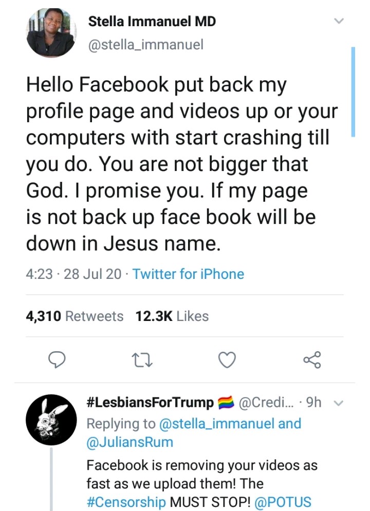 The backlash Dr Stella Immanuel received didn’t stop with individuals.