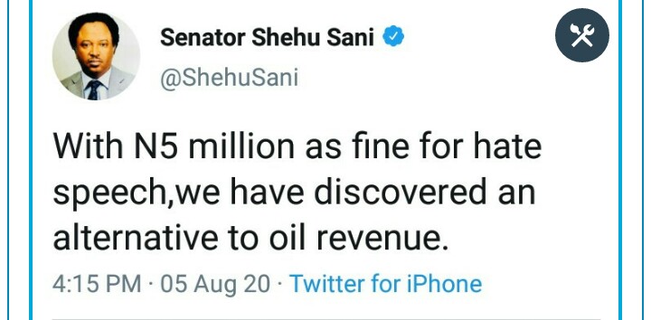 Senator Shehu Sani has joined NBA and activists in faulting the Federal Government for hiking the fine for hate speech.