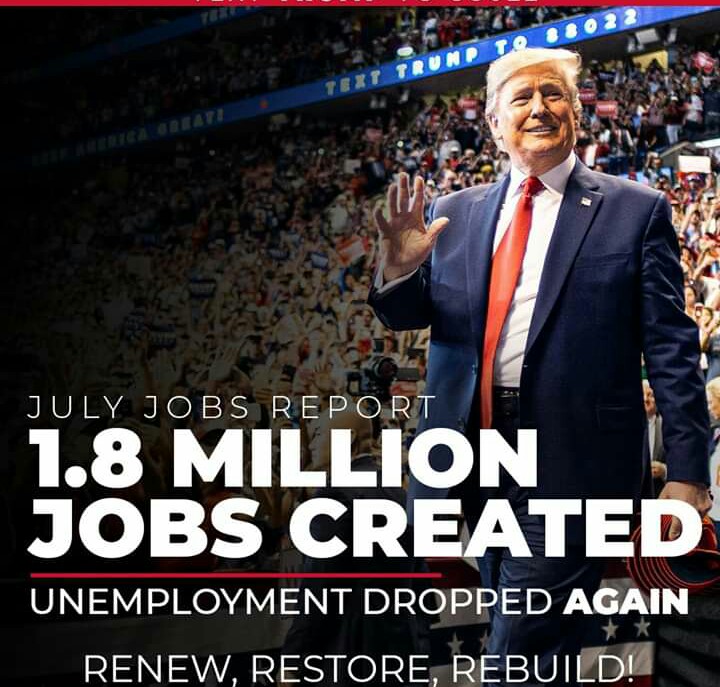 The U.S. economy added 1.8 million jobs during the month of July, sending the unemployment rate down for the third straight month — a drop that fell in line with economist predictions and pointed to the recovery that began before infections started ticking up.