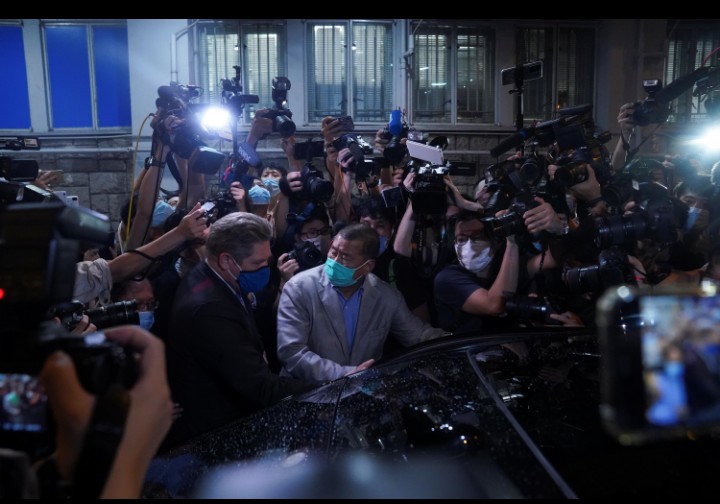 Lai was released on bail in the early hours of Wednesday morning, flanked by his lawyers, and greeted by a throng of supporters who chanted “fight till the end” and “support apple, have an apple a day”, referring to the pro-democracy tabloid.