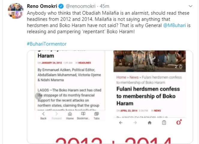 Anybody who thinks that Obadiah Mailafia is an alarmist, should read these headlines from 2012 and 2014. Mailafia is not saying anything that herdsmen and Boko Haram have not said? That is why General @MBuhari is releasing and pampering ‘repentant’ Boko Haram