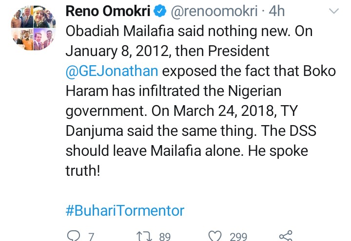 Former Presidential spokesperson, Reno Omokri has reacted to report of DSS’ invitation to former deputy governor of Central Bank of Nigeria and former presidential candidate of the African Democratic Congress (ADC) Mailafia Obadiah over his claim of a Northern Governor being one of the commanders of Boko Haram.