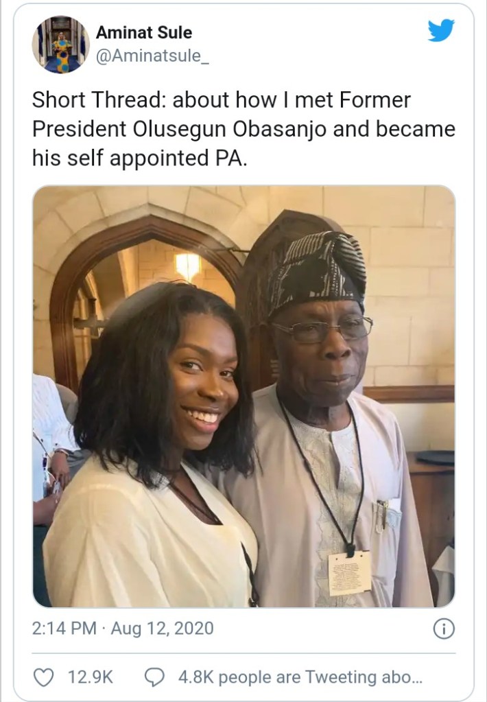 “Short Thread: about how I met Former President Olusegun Obasanjo and became his self appointed PA.