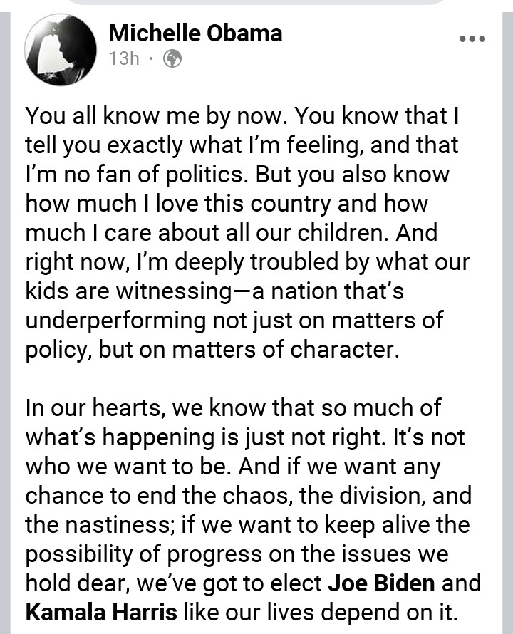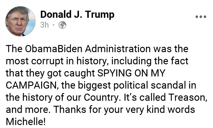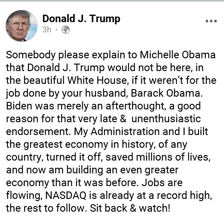 Trump responded to Michelle Obama’s speech in series of posts, saying her husband’s tenure was responsible for his 2016 election.