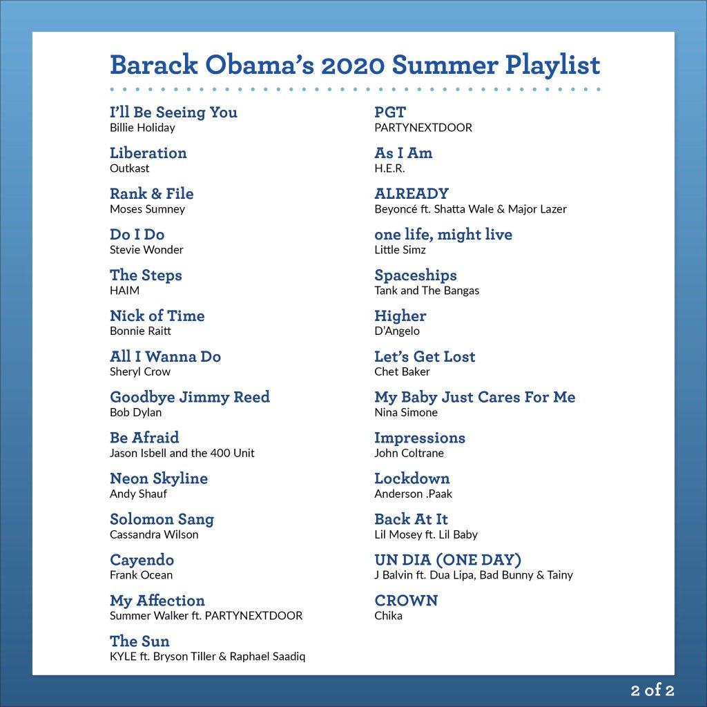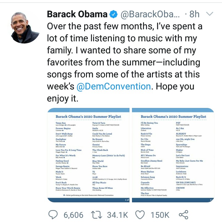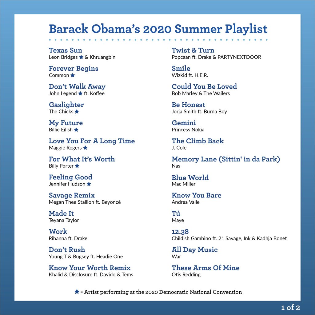 “I wanted to share some of my favorites from the summer, including songs from some of the artistes at this week’s @DemConvention. Hope you enjoy it,” he wrote.
