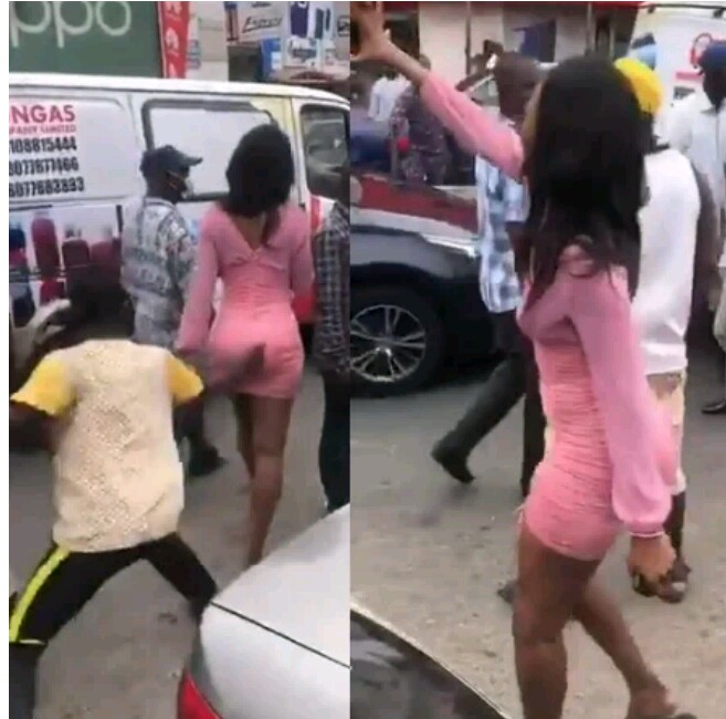 A woman was filmed angrily cursing a lout who grabbed her butt in Computer Village, Ikeja.