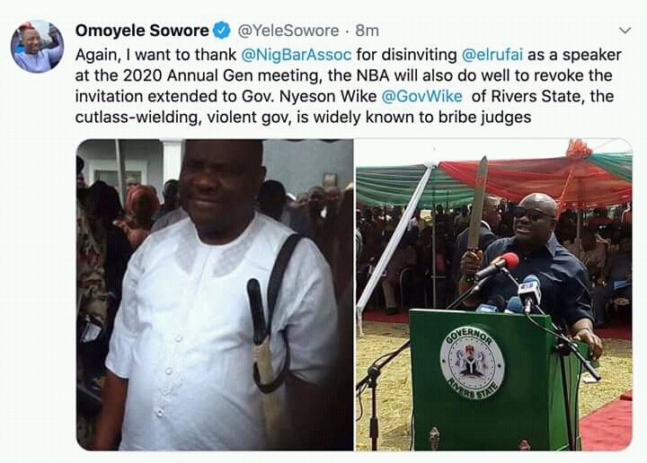 The presidential aspirant for the A.A.C party during the 2019 election, Omoyele Sowore has accused Rivers state governor, Nyesom Wike of bribing INEC officials and also threatening to kill the officials if they failed to deliver.