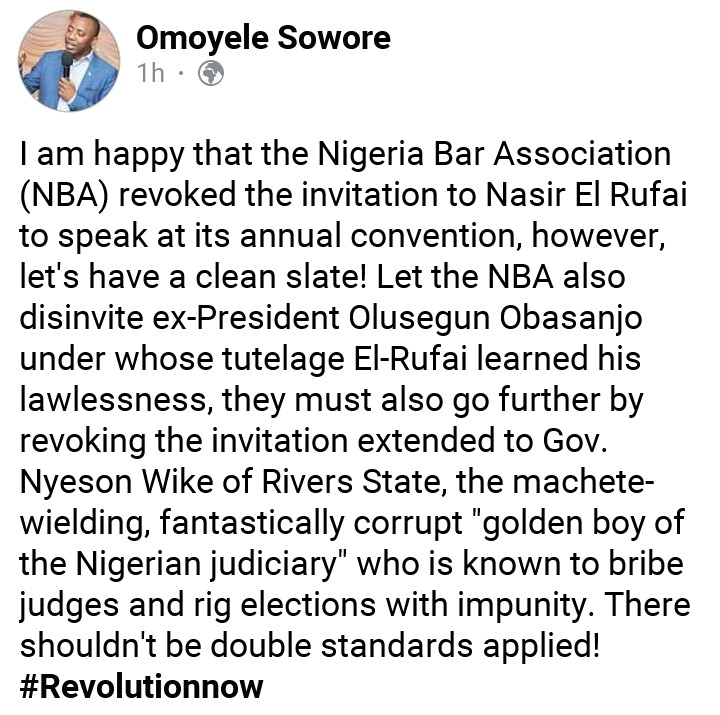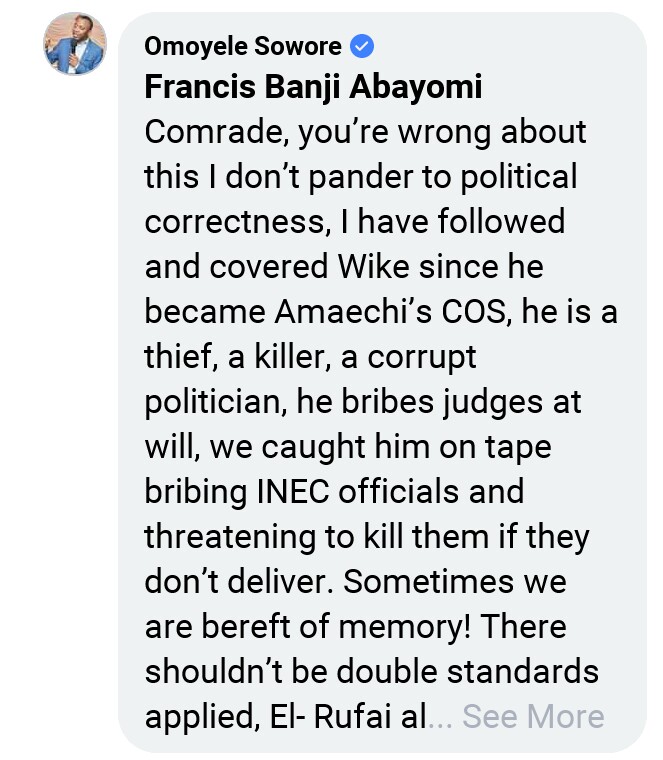 Sowore made this statement while responding to one Francis Banji Abayomi on his facebook page.