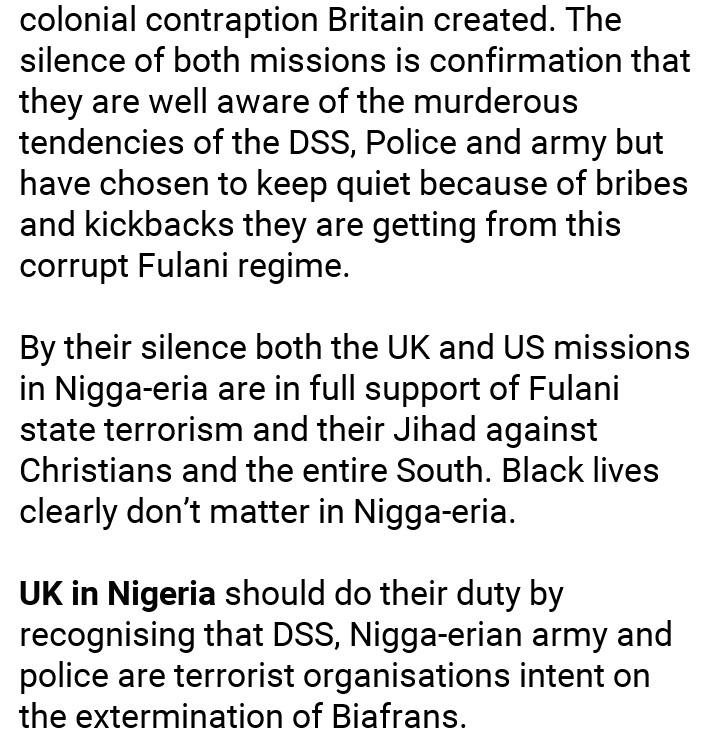 In series of post, Kanu alleged involvement of some foreign countries in killings of his member by their silence.