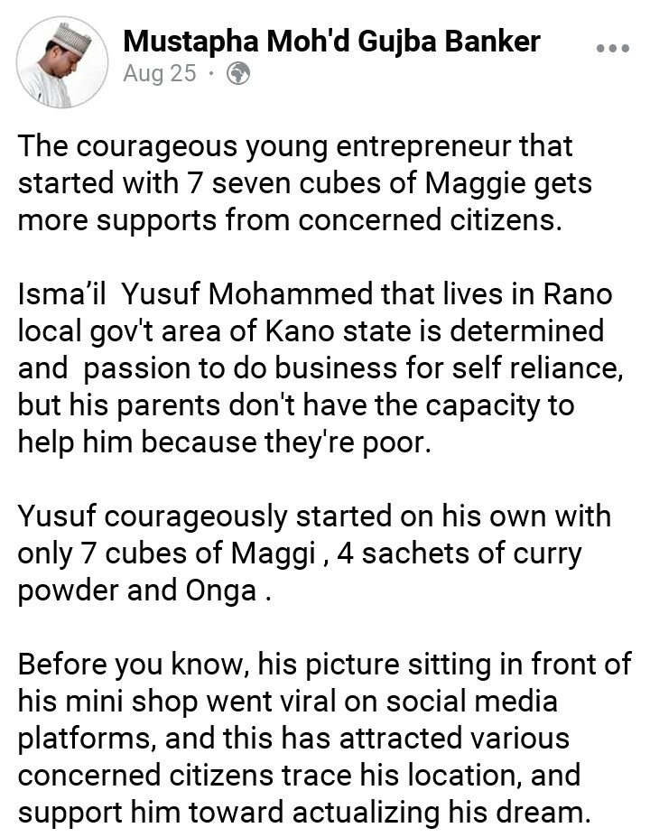 The courageous young entrepreneur started on his own with only 7 cubes of Maggi gets more support from concerned citizens.