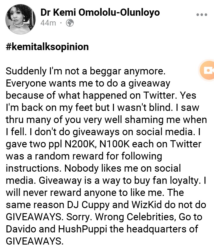 Controversial self acclaimed investigative journalist, Dr. Kemi Olunloyo admits to been a beggar once but not anymore.