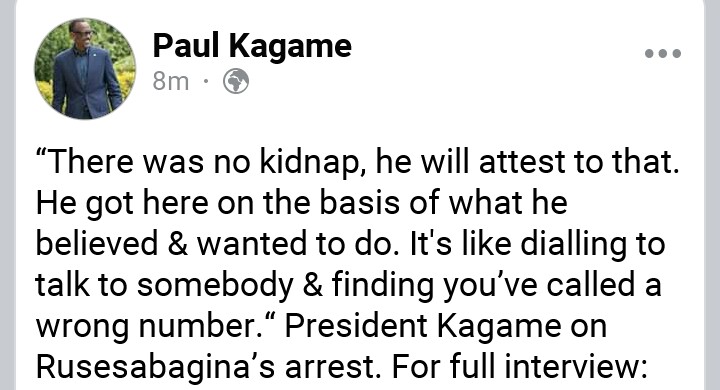 President Paul Kagame has denied Hotel Rwanda hero was kidnapped.