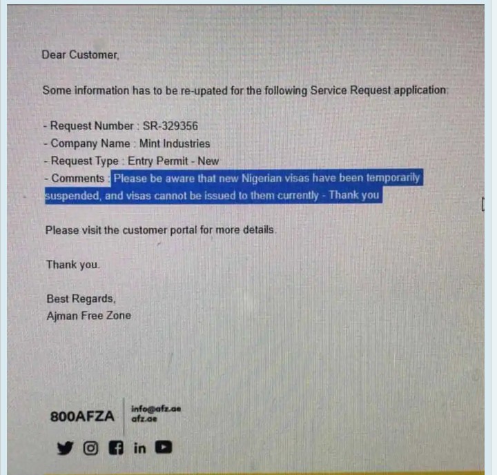 Several complaints from Nigerians in UAE states that Dubai Government Rejected their Visa Application.
