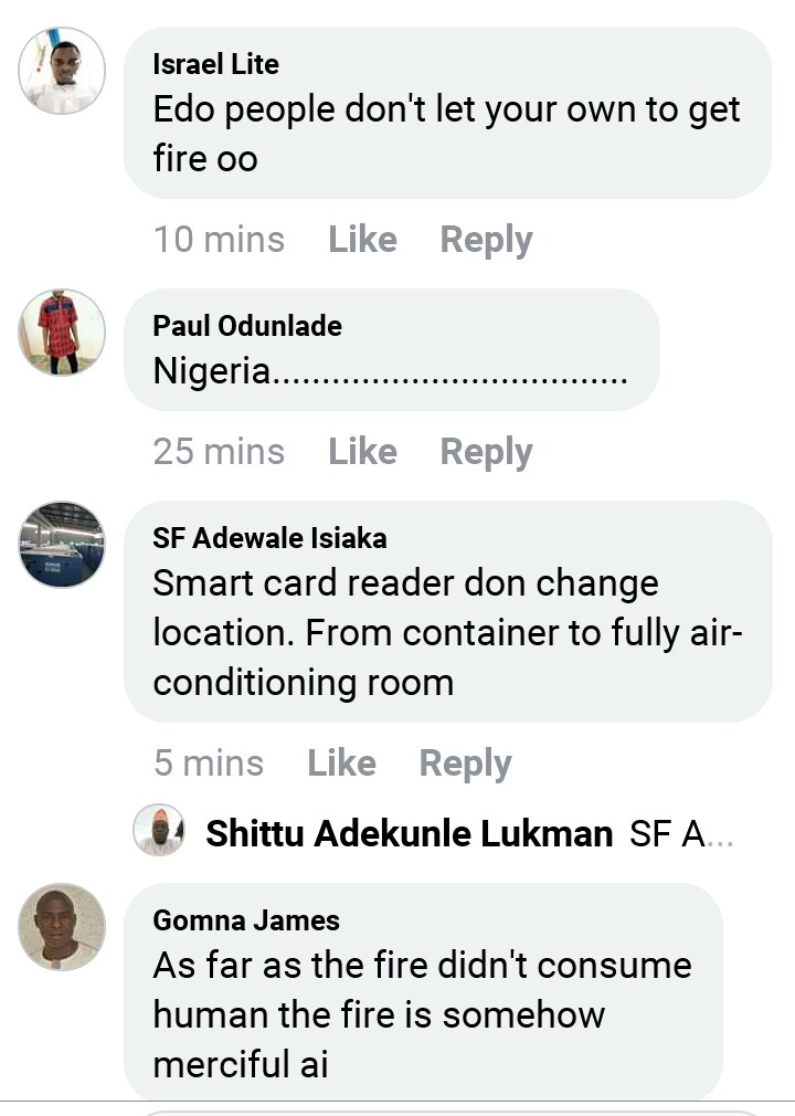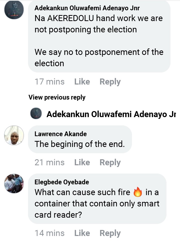 Fire gutted the container housing Smart Card Readers in Akure, Ondo State.